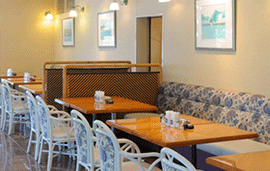 咖啡廳在正門大廳入口旁, 早餐和午餐時間提供豐盛均衡的自助餐.