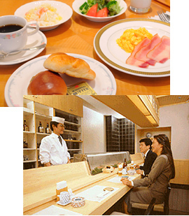 充分利用空间的大厅休息室。在时髦现代的气氛中迎接诸位的光临。您可充分利用此休息室等候会面、商务会谈等。除了饮料、您也可在此享用便餐。在此白天可当作茶廊、晚上则可当作酒廊。